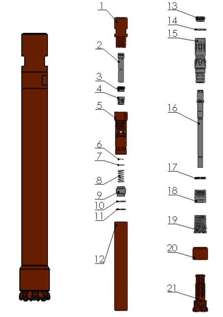 | 10 | 橡胶圈 | 21 | R54潜孔钻头 |